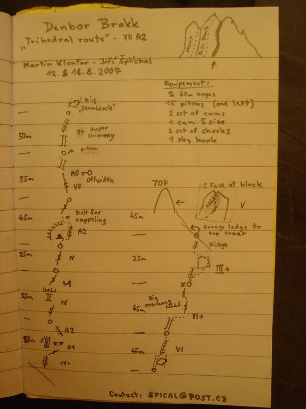 Denbor Brakk - Trihedral Route VII A2, 450m, 10 pitches - Martin Klonfar, Jiri Splichal