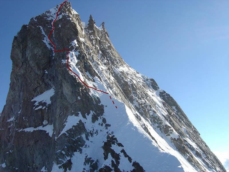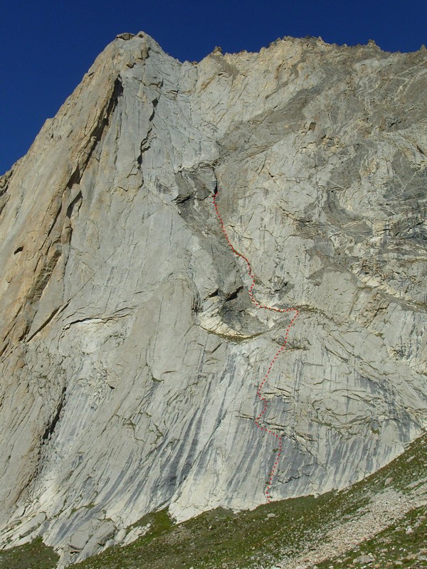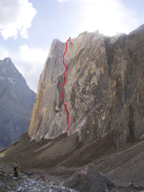 12. and 18.8. Ascent on Denbor Brakk (4800m), Haulbag, Du Arschloch! / Trihedral Route 6c A1 (VII A2), 450m, 10 pitches