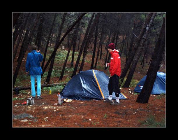 Jelikož už nejsme v Chorru žádní nováčci, rozhodujeme se pro ubytování v lesním porostu nad kempem, což má velice strategickou polohu -je to kousek do Refka i Frontales. Plácek s námi sdílí dva mladí poláci -Bolek a Lolek. Jeden skoro nemluví, nehulí tovar ani nepije, kotníky si zvrtává už na pěšince cestou do skal, zato poměrně rychle přelézá Rimu Libre. Ten druhý mluví až moc, tovar hulí a v Rimě sází jeden pokus za druhým (v době našeho odjezdu jich měl na kontě tak 20) avšak marně.