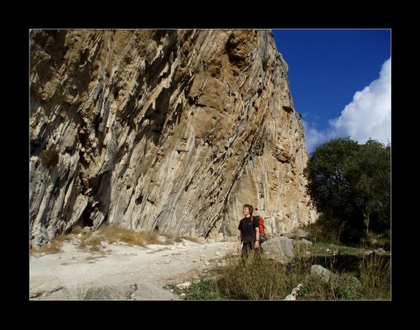 Z počátku nás pronásleduje ne zrovna ideální počasí, pořád poprchává, takže většinu času trávíme v převislých sektorech Frontales, kde však je den od dne stále více narváno. Do Chorra se rozhodla najet snad celá Evropa. Lezem co to dá, ale ta pravá pohoda zatím ještě chybí. Alespoň že se nám daří držet 100% docházku v Refku (zdravíme Rudu a ostatní kaBrňáky). Jenže i tam postupem času začíná být nesnesitelně narváno, takže se stále častěji přesunujeme na večírky k Piškotům do kempu. Jeden takový večírek se pak Piškotovi stává osudným, když si při obětavém běhu pro další víno zakopnutím o stanovou šňůru vtipně nataženou přes cestu zhmožďuje koleno. Lezecké ambice tak může hodit za hlavu a od lezení si na pár dní odpočinout...