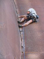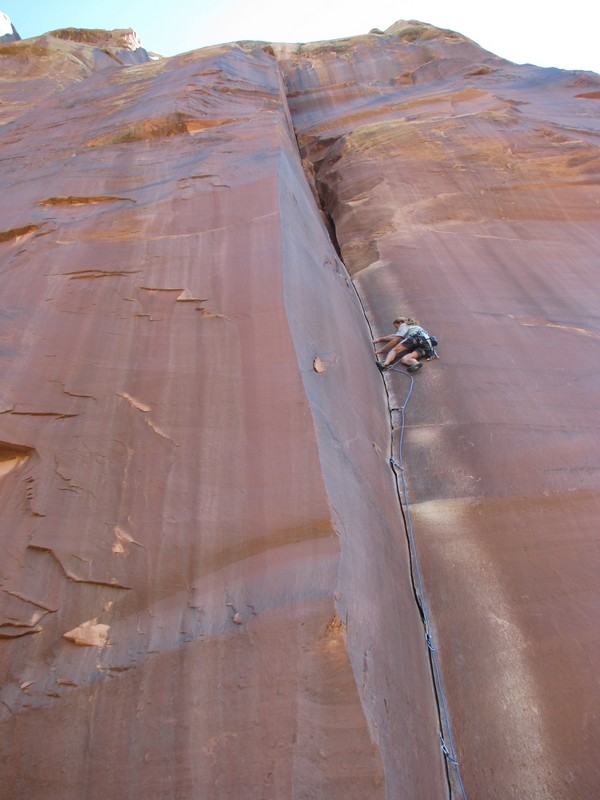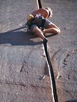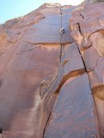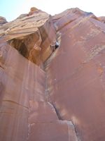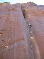 Moab je městečko ukryté v pískovcových kaňonech Utahu, a tvoří centrum lezecké a bajkerské obce. Skal je v okolí nepočítaně a světově známých trailů na ježdění taktéž. Pro představu o geniálním terénu pro kola se můžete podívat na tytrubku. Řehy si tedy přišel na své, ale ani lezecky jsme nezůstali pozadu. Rozehřáli jsme se v malé ale pěkné boulder oblasti Big Band, a vrhli se do spár Indian Creeku. IC je zcela famózní oblast, vůbec bych se nezlobil mít něco takového v čechách. Extrémně pevný pískovec má dobré tření a umožňuje jištění frendy. Bohužel i u tak pevného písku je olezenost kolem frekventovaných spár znát (i na mých fotkách). Pokud se chcete naučit a zdokonalit v různych rozměrech od prstovek po šmrdlačky, rozhodně doporučuji! Největší úlet jsou ovšem krásně řízlé žábovice, v čele s proslavenou Supercrack of the desert, tu jsme si nemohli nechat ujít. Když se připočtou turistické atrakce jako Arches NP – proslulé pískovcové mosty a brány, Moab prostě nelze vynechat!