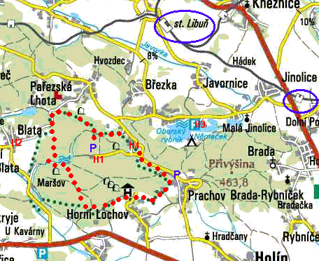 Používané hostince jsou označeny H1-3.