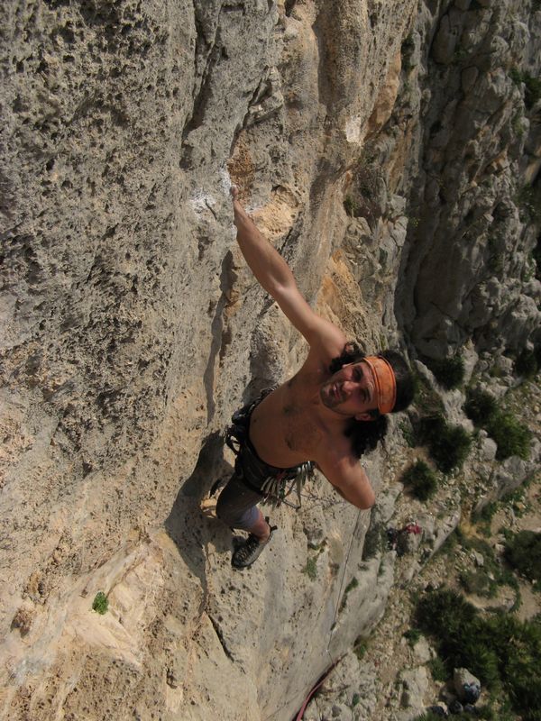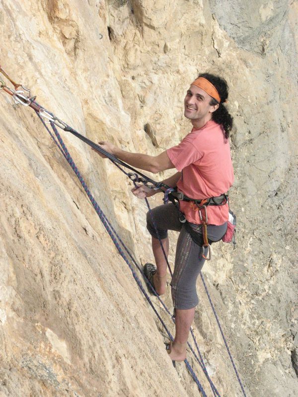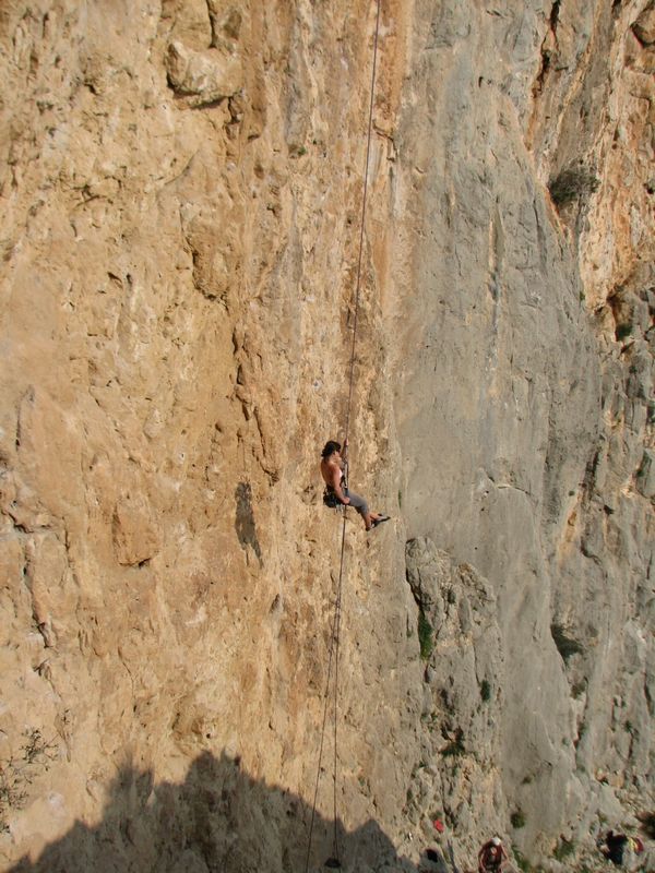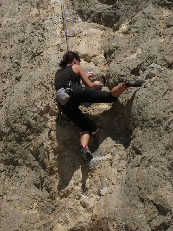 Při dalšim lezení nám štěstí moc nepřeje. Bery mi při spouštění projede osmou ve chvíli, kdy je tak 15 nad zemí. Ještě, že se v tu chvíli držel druhýho fousu lana. Večer je tudíž oslava jeho druhýho narození.