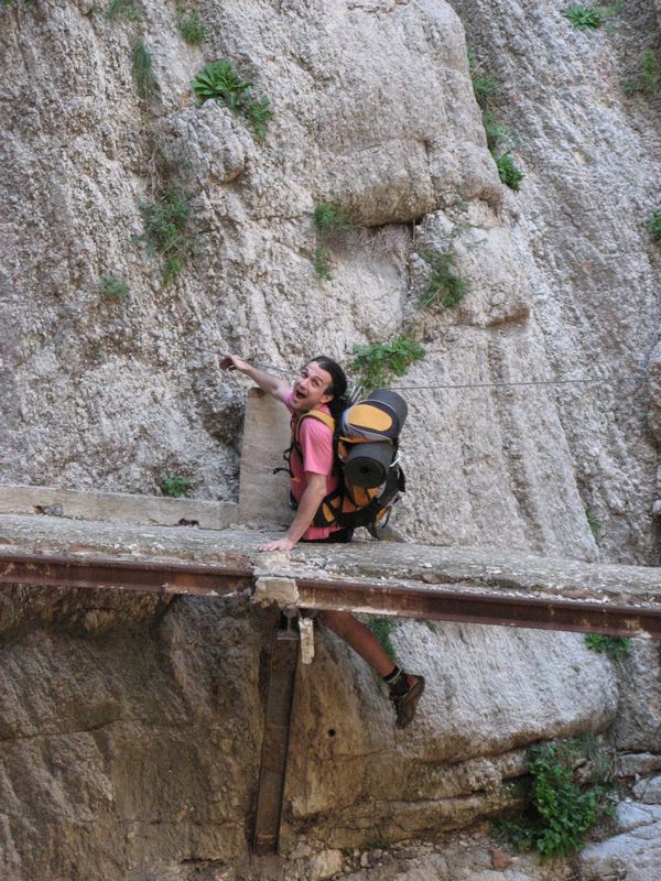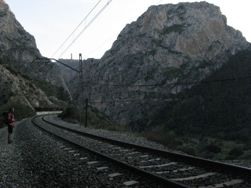 Ráno je s podivem, že se probouzíme včas, abychom stihli vlak do Malagy. Na nádraží jsme dokonce o 15 minut dřív. Tak tam v mlze a větru poskakujem a nandaváme batohy pokaždý, když se v tunelu ozve vlak, abychom je zas mohli sundat, když se přiřítí rychlík nebo náklaďák. Naše vozidlo dorazí se skoro hodinovym zpožděnim (kam se na španěláky hrabou český dráhy), ale můžem bejt rádi, že vůbec přijel.
