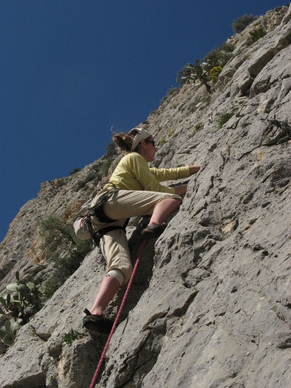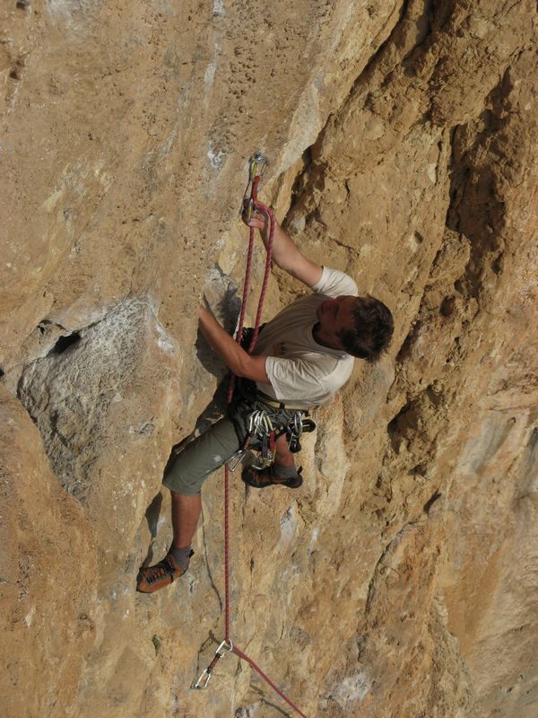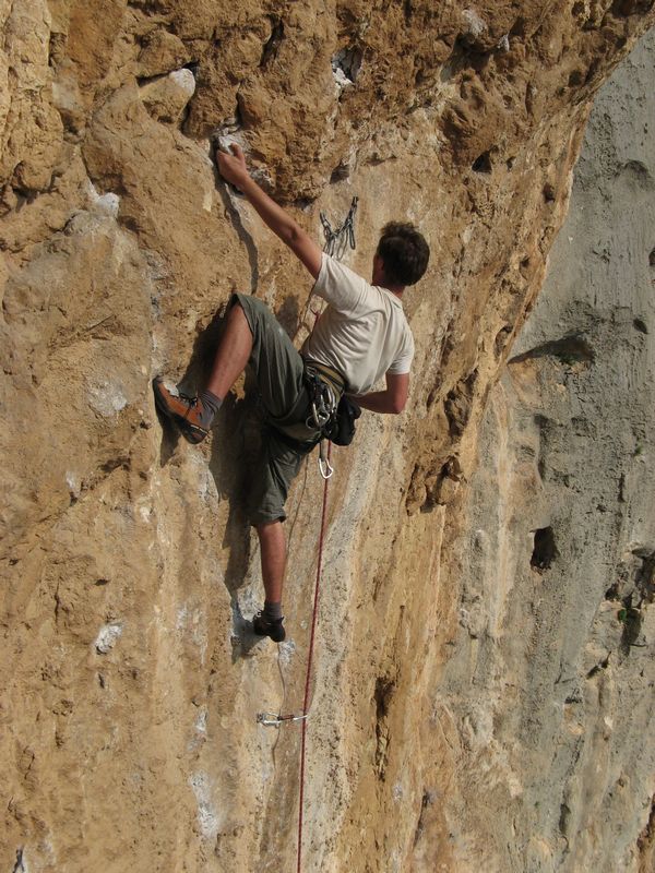 A další den je ještě hůř. Horác mlsně pokukuje po Little brown baby, prý nejlehčím 7a+ v okolí, nakonec ale zůstává při zemi a pouští se do 6 céčka o kus vedle. Na druhej pokus ho dává RP a my s Evou se v něm na druhym pěkně potrápíme. Naproti tomu Bery si naplno užívá dovolenou, která mu začne až za dva dny. Běhá 6b pluska jedno za druhym, až neslušně se v nich prochází, ale bojovat v něčem těžším odmítá.