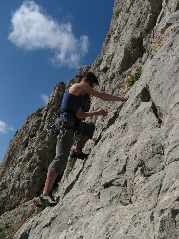 Rozdělujem se na dvě trojky – slováci + Horác jdou bušit 7áčka (nakonec se vrátěj i se skalpem Little brown baby) a zbytek, kterej si užívá pěknej den ve skalách a trápí se v 5pluskách. Teda až na Evu, který bolavá hlava dělá asi dobře, protože jí to leze, jako za celý dva tejdny ne.
