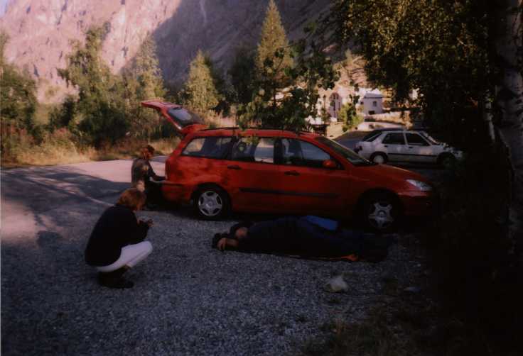 Odolávám pokušení napsat na karton "Chamonix" a zkoušim to na silnici první třídy, kousek do Findrolu, kde je dálnice na Ženevu. Nic moc, až najednou vidim, jaxe jedno auto, který projelo před chvílí kolem vrací a obrací znovu. Další příjemná Francouzska, no aby ne. Bohužel je jí tak padesát. Ten kousek mě teda sveze a poradí mi, abych šel na dálnici na kasu kde vybírají mýtné.