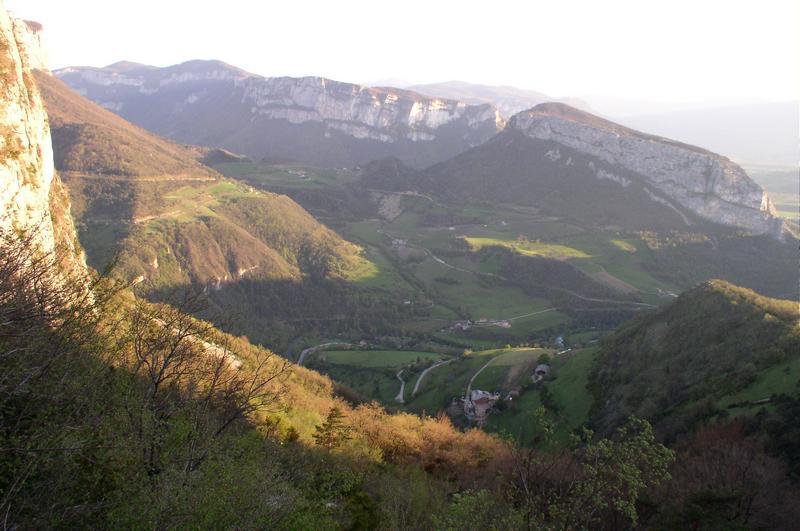 Takto vypadá pohled do údolí od úpatí stěn. Stěny Presles se nad údolím tyčí velmi majestátně, ale není objektiv, který by to z údolí dokázal zachytit. Takhle nějak vypadalo naše místečko na jednu noc.