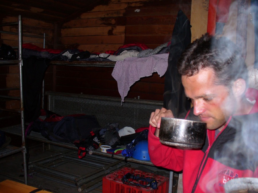 biváček s kouřícíma kamnama (2277m). Ve 20:45 jsme tam jak na koni – ale