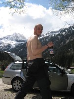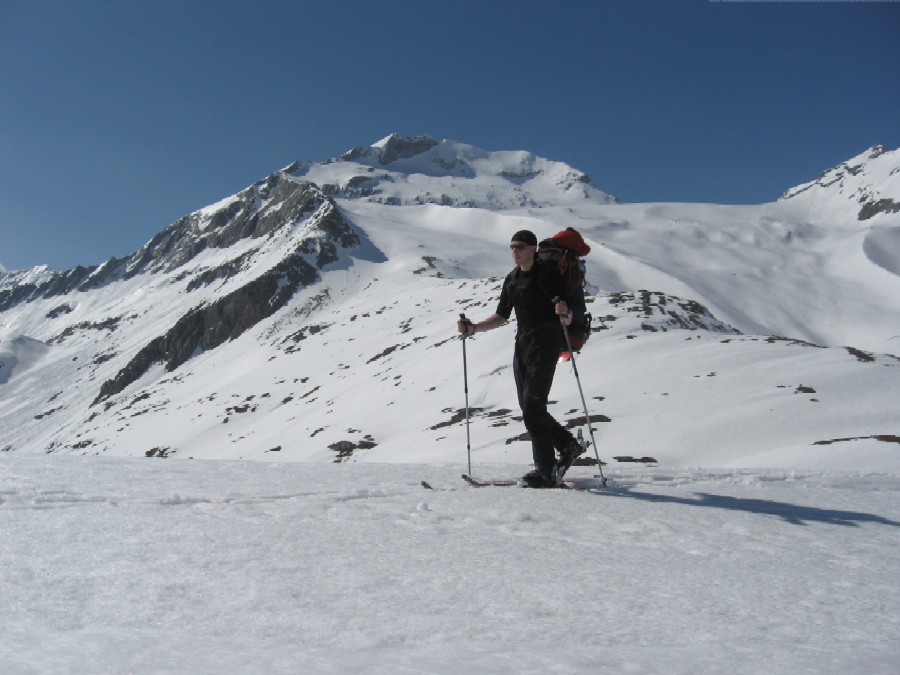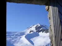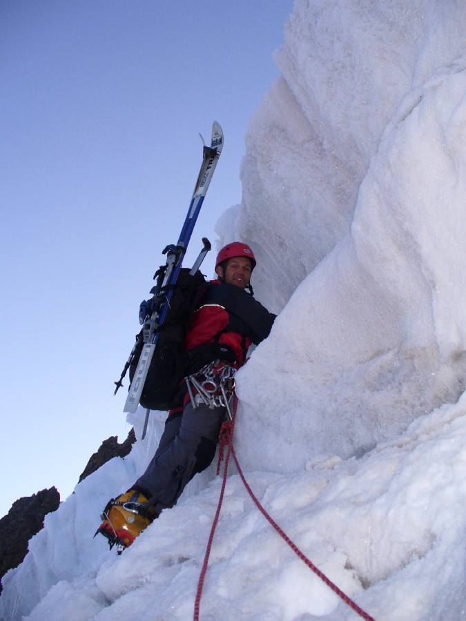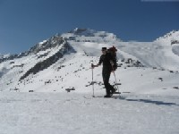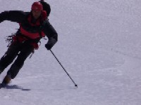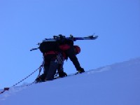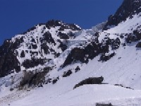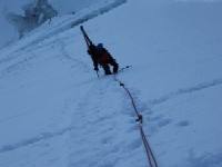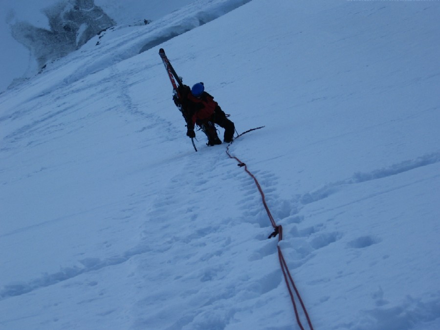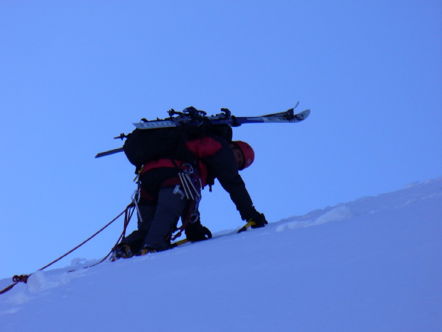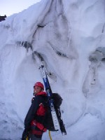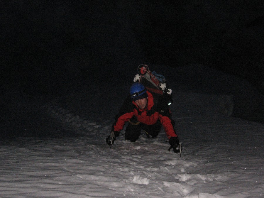 znova 150m nahoru, strašlivým prudkým žlabem plným hnusnýho mokrýho sněhu, kde