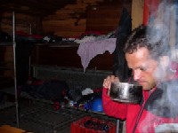 půlhodině usilovné aktivity jsme ho učinili obyvatelným a začali tavit sníh, vařit
