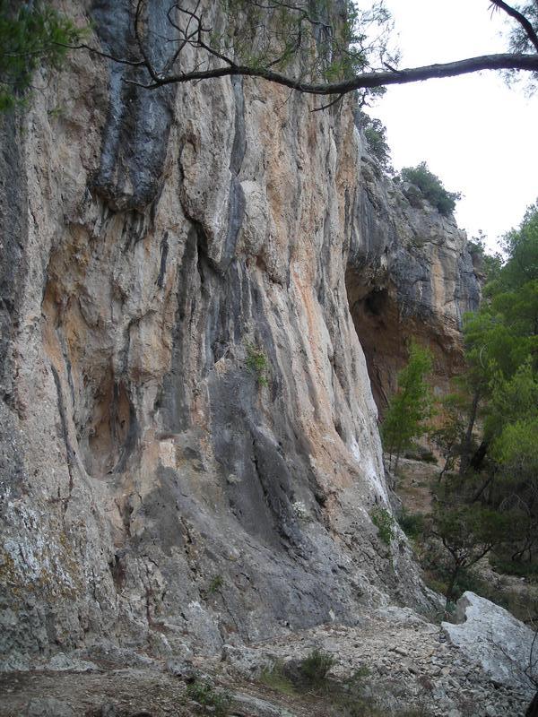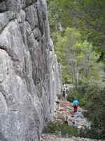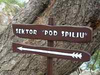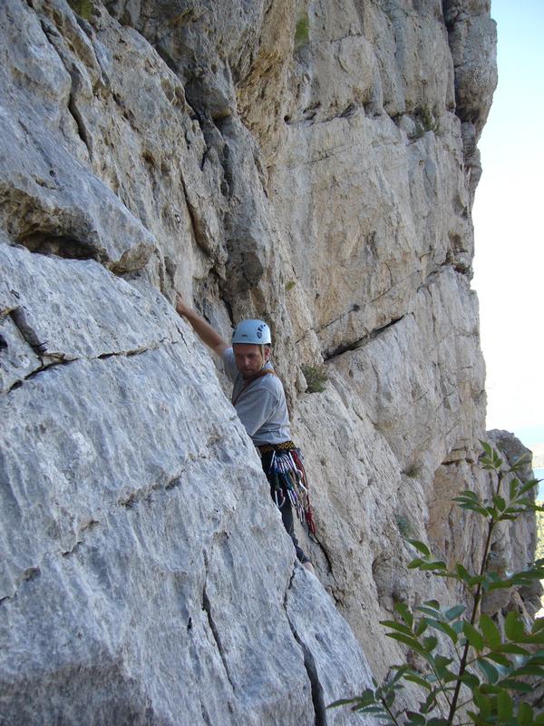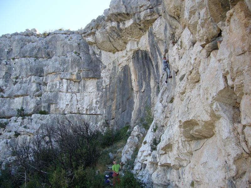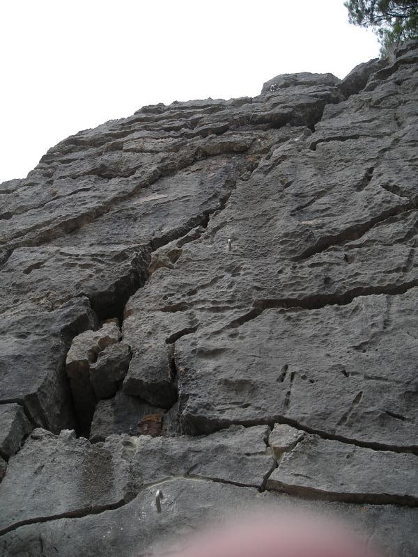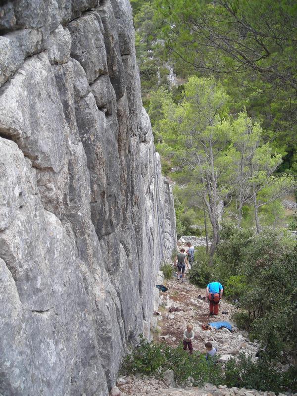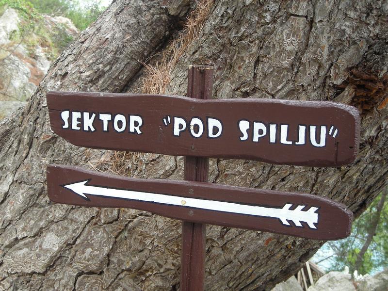 kouknout, je "Pod Spilju". Průvodce popisuje sedm cest, ale už jich tam je naflákáno víc a stále se tam pracuje. Zrovna tam viselo pracovní lano a bylo vidět,