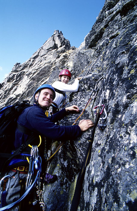 Jednoho lednového večera jsme se nad sklenkou svařáku rozhodli, že letošní září vyrazíme do Tater za trochou lezení a fotografování. To jsme ale ještě nevěděli, že tato cesta bude také cestou svatební. Srpen příliš lezeckému růstu nepřál, zato září to vynahradilo. Do vyhřátých Tater jsme vyrazili ve složení, Honza, já a mravnostní dispečer Tlama, vyzbrojeni zbrusu novýma půlkama, reversem, friendama a trochou vědomostí. Brčálku jsme měli zamluvenou na celý týden, jen jsme si nebyli jistí tím každodenním lezením (teď jen marně lovím v paměti, jestli jsme VŮBEC NĚKDY lezli dva či více dnů po sobě – no, nic mě nenapadá…).