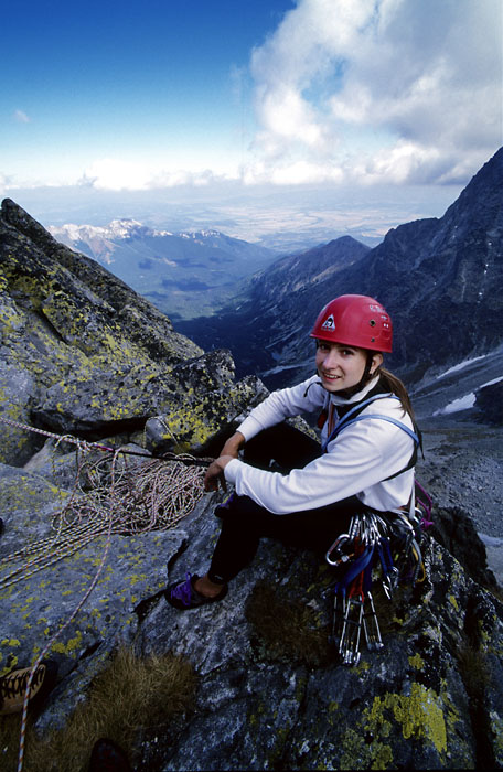 Ráno nás u nástupu Fehér, Lehotského cesty čekalo zklamání v podobě dvou lezců v první délce naší zvolené cesty. Když strávili na jednom místě půl hodiny a zatloukli asi dvacet skob, vydali jsme se raději zkusit štěstí do cesty Cez knihu. Tam jsme potkali dvojici z horské služby a střídavě jsme se s nimi předháněli a oblézali. Honzovi jsem záviděla, že na něj připadla délka s knihou, taková krásná spára byla za odměnu. Vylezli jsme tu jen tři délky, protože další už byly maximálně tak na drnocepín, a vrátili jsme se pod Kozí štít. Fehér,Lehotski byl volný a štěstí jsem tady měla já, protože dvě nejkrásnější délky (první a třetí) připadly na mě. Hořejšek tvořily samozřejmě převislé trávy a po páté délce plahočení v hlíně jsem myslela, že už to nedolezem. Naštěstí to byla poslední a otevřel se nám pohled na vápencové vrcholy Belianek.