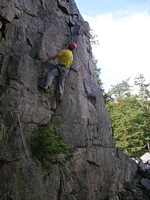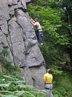 Jindřichova skála není sice osazena borháky(naštěstí), ale poskytuje cca 30 linií lezení všeho druhu. Koutky, spáry, stěnky. Staré skoby je vhodno doplnit vlastním matrošem. Dle Filipovy paměti(z ilustrované knihy si pamatoval tvar skály ) jsme od auta šli cca 1,5hodiny, ale ve skutečnosti je to 5 minut. Krásné lesy a výhledy na zříceninu Valdek. Kde nejsou lokry je skála pevná a pro všechny je tu lezení min.na jeden den. Sami z fotek posuďte tu nádheru kvakového lezení. Oblast opět najdete na www.lezec.cz, ale z nákresů cesty nepoznáte. A pokud ano, dejte mi vědět!