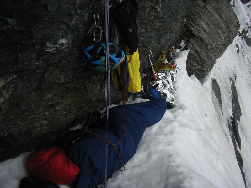 | Severní stěna Les Droites | Ve stěně | První noc |