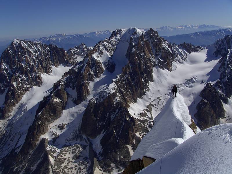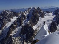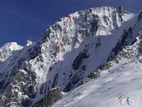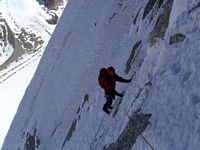 Před dvěma lety jsme s Magnuskem podnikli parádní přechod Mont Blanku z Itálie do Francie přes Freneyský pilíř. Přesně v tomto duchu spřádáme letošní plány, jen přechod má být opačným směrem. Z Francie přes severní stěnu Les Droites, výklus pod Jorrassky a přes Rubáš do Itálie. Plán to famózní, 7 dní by to mohlo spravit. Tři týdny čekáme na počasí, než můžeme 16.6.2008 konečně naskákat do stylově červené kultovní škody 120L a vyrazit směr Chamomix. Po pár hodinách spánku vyrážíme z Grand Montets na pochod směr chata Argentiére, lanovka nejezdí. Chata je však předaleko převysoko, takže nakonec docházíme k názoru, že tam vlastně nepotřebujeme, a bivakujeme kousek od nástupu do stěny. I tak nám vynáška zabrala půl dne. Alespoň vyzkoušíme spaní přikryti jen jedním spacákem, co máme sebou. Brzy ráno nabíháme do nasvícených ledových glazurek. Největší obtíže stěny spočívají v prvních třech délkách, takže dost ostrý start. Jištění se tu opravdu nedostává, alespoň že máme jakés-takés štandy. Po notných dávkách adrenalinu v glazurkách, následuje „rozumný“ zbytek 1000m stěny, prima ledové/mixové lezení. Přední hroty si tu přijdou na své. Špatný sníh v horních partiích stěny nás nutí 2x bivakovat na vykopaných poličkách, a když se teprve třetí den odpoledne dostaneme na vršek, a následně doklopýtáme na chatu pod pokličkou, je jasné že na Rubáš již nezbývá dost sil a odhodlání. Na chatě se konečně trochu vyspíme, zamáváme Joraskám, a pochodem po Mer de Glace opouštíme scénu. Ještě týž den večer valíme domů, stále nemohouc uvěřit, že inzerovaných 5 dní azura opravdu vydrželo, toť opravdový zázrak. Pořízený film napoví o našich zážitcích více.