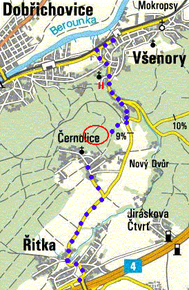 Autem nejlépe po výpadovce na Strakonice, v obci Řitka odbočit na Všenory a po cca 2 km odbočit vlevo na Černolice.