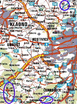 (na mapce červený ovál vzdálenější od obce Srbsko)
