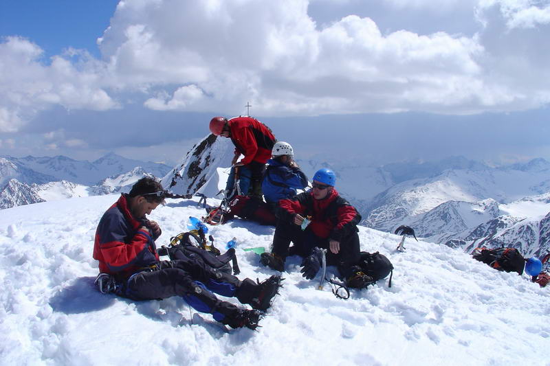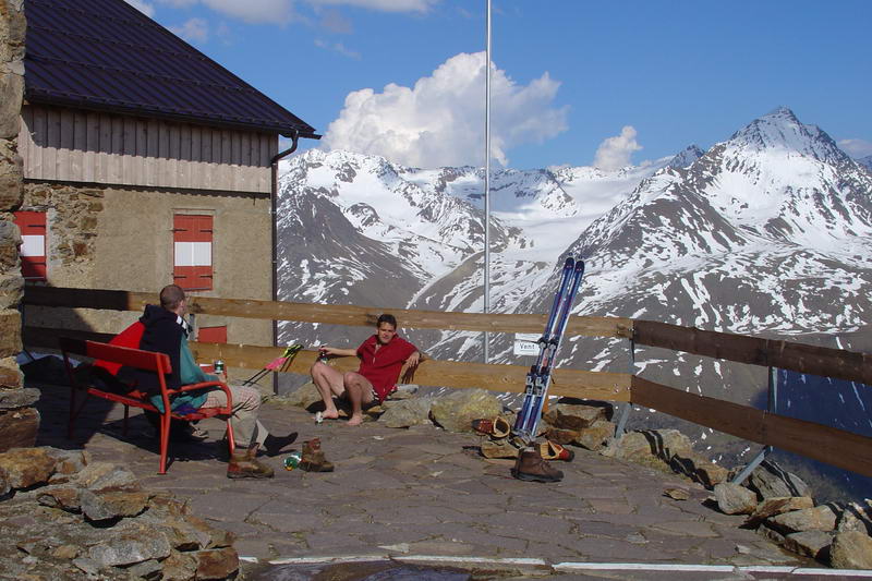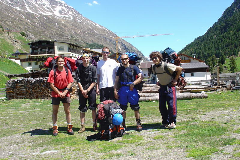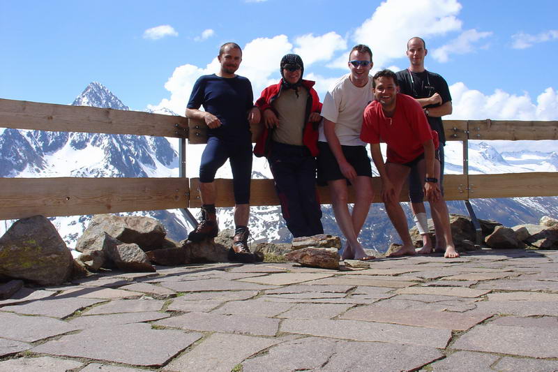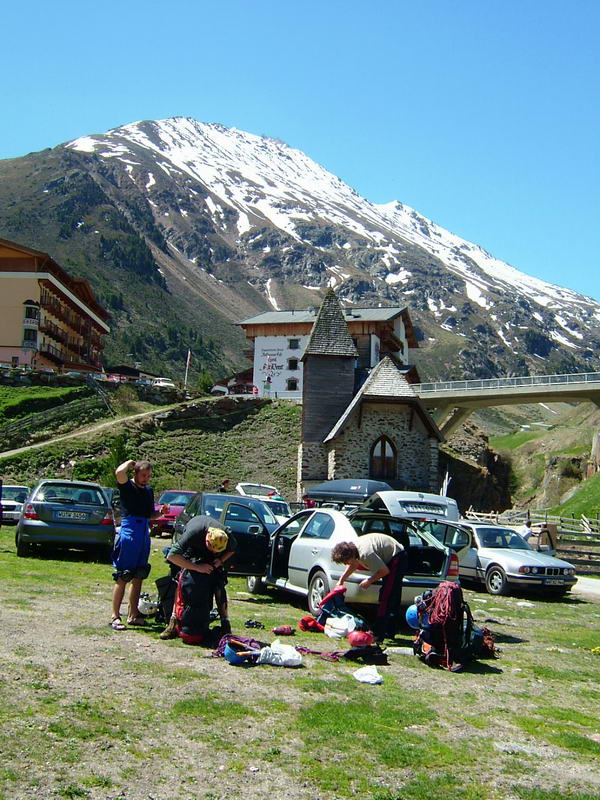 Výjezd jsme domluvili jak jinak než v hospodě, což zřejmě nikoho nepřekvapí. Nakonec nás jelo 5 (Růža, Wummi, Alf, Šimi a Čulda), což sice do auta není ten nejlepší počet, ale poslední přibraný Růža přispěl svojí znalostí terénu, protože na Wildspitze už jednou šel normálkou. V pátek ve 4 ráno jsme měli sraz u Růži před domem, kam jsme se kupodivu všichni dostavili včas. Během chvilky jsme se nalodili do Oktávky a vyrazili směr Německo. Jízda probíhala až neuvěřitelně hladce, za chvíli jsme byli na hranicích, v 9 ráno v Mnichově. Ten nás překvapil nejen tím, že v něm nebyla zácpa, ale i faktem, že tam byly před dálnicí semafory, které Alf pro jistotu projížděl na červenou. Zbytek cesty přerušovaly už jenom naše měchýře.