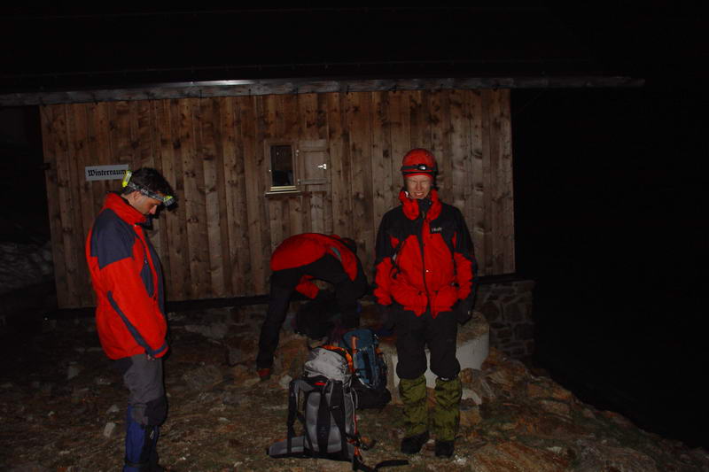 Po celkem asi 3 hodinách jsme na chatě. Zdejší winterraum je luxusní dřevěný domeček pro asi 20 lidí.