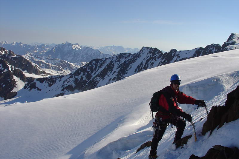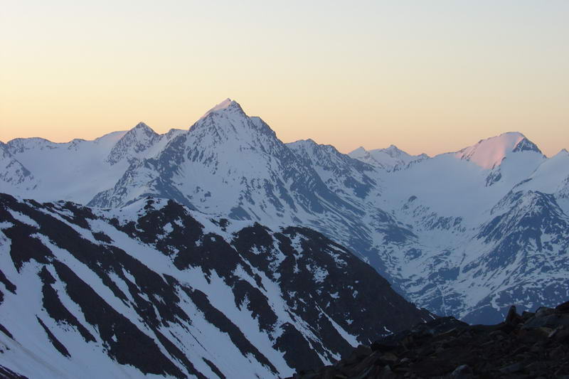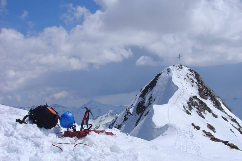 No a na závěr suchá a stručná fakta: Wildspitze 3768m, severní stěna - led 50°(v dolní části spíš o trochu víc), 270m. Z Ventu na Breslauerhutte 3h, pod stěnu 3h(my 5,5h), stěna 2,5h (my 4h). Ubytování ve winteraumu 7E/noc pro členy OEAV(nečleni 14E).