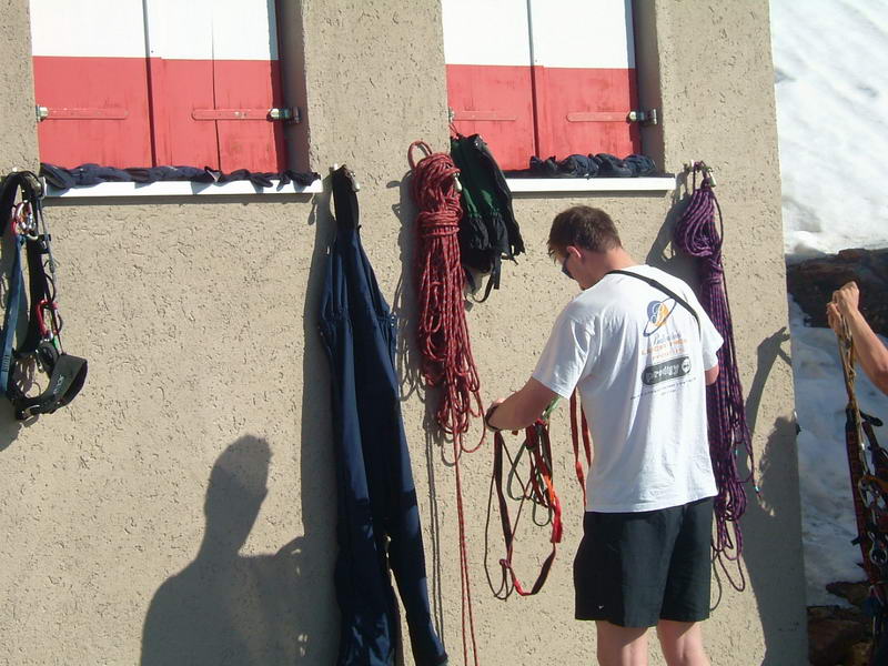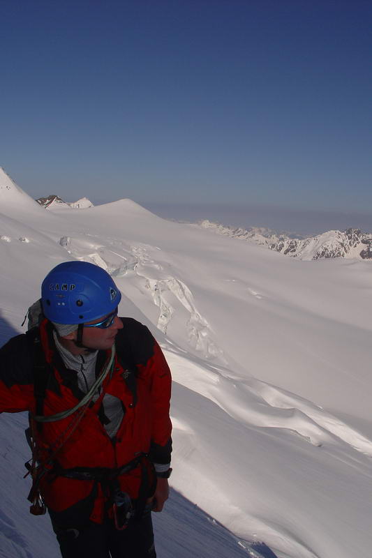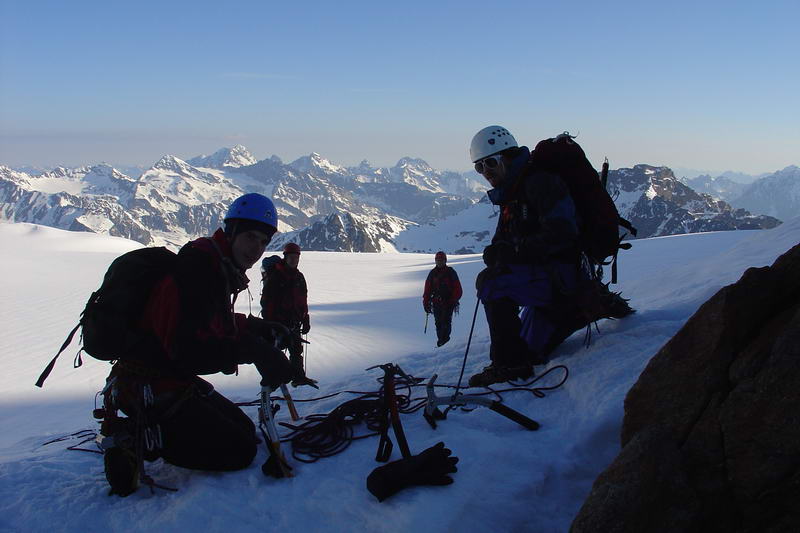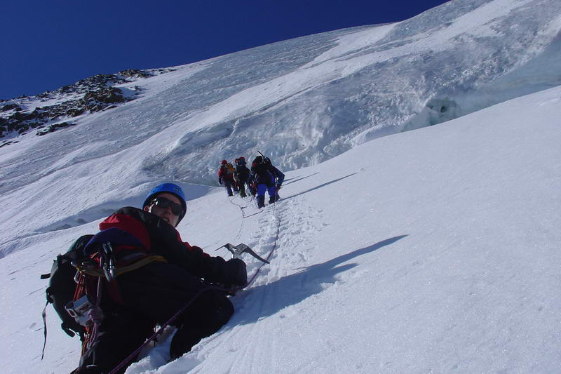 a pak normálkou sestupujeme. Na ledovci ještě Čulda připospadne do trhliny, ale bohužel je navázanej... :-)