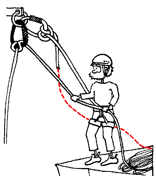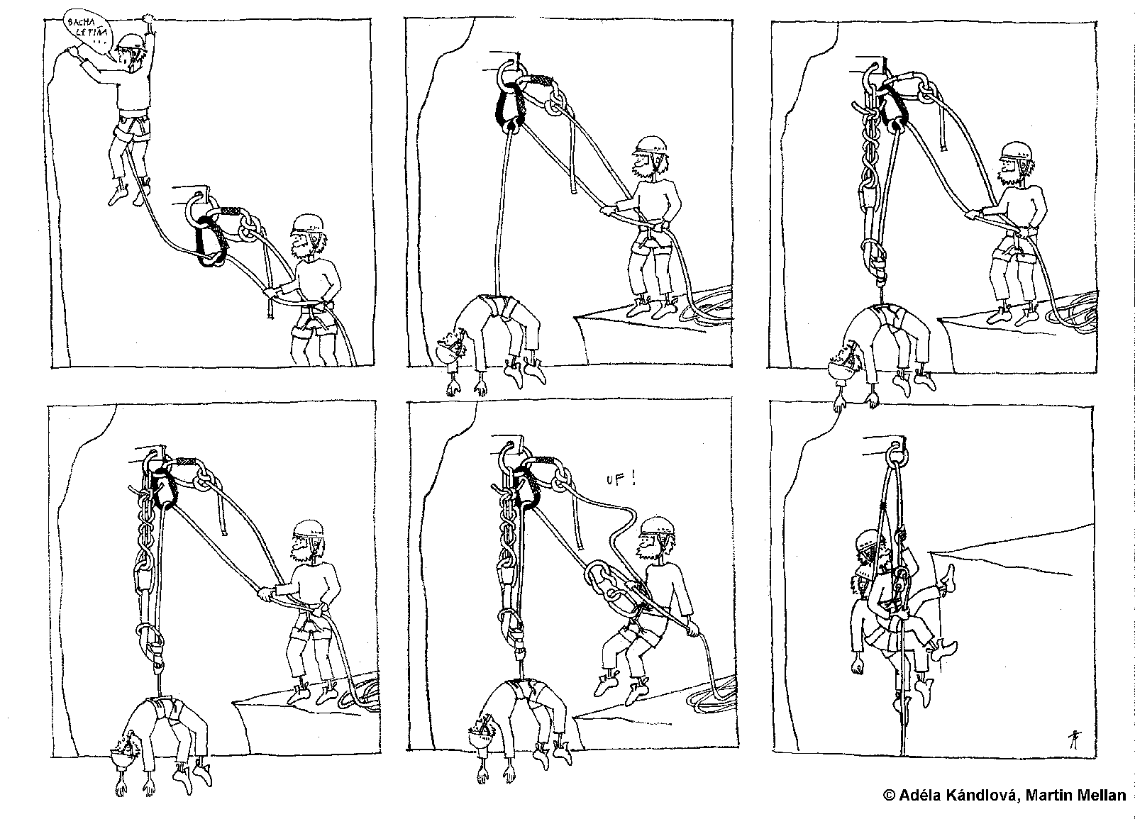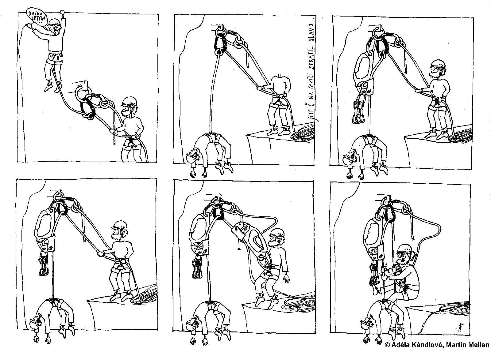 Zbavit se bezpečně tahu lana s ohledem na další postup.
